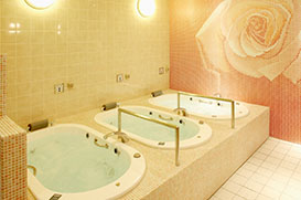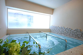 ジャグジーバスミネラルたっぷりのジェット水流で全身を刺激。気泡による超音波で十分に身体を温め、よりトリートメントの効果を増幅します。