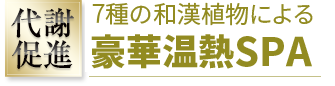 ハーブ蒸し岩盤浴東洋と西洋の7つの和漢植物をオリジナルブレンドしたスチームの芳香が吸収され体を芯から温め、老廃物を押し流します。
